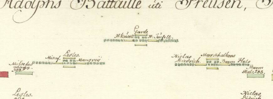 The 3-squadron brigade was merely a 4-squadron brigade without the 4th (reserve) squadron. It's presence or absence did not alter the formation of the 3 frontline squadrons. As is shown by the brigades deployed at Frankfurth in may 1631 picture Do note the absence of the commanded shot which had been detached to act independently. The reserver units (4th squadron, commanded shot) of the brigade were used as needed. In at least one instance Gustavus detached not only the commanded shot from the brigade but also the shot belonging to the 4th squadron leaving a pike-only reserve. picture So the diagram is neither old, nor out of date and the fact that it is drawn to scale and contains a wealth of additonal information makes it one of the most important sources for the study of the 3-squadron or 4-squadron brigade during the TYW. |