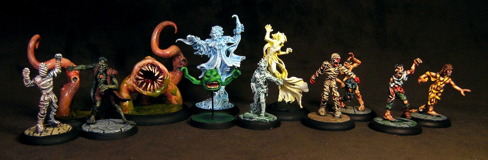 The threee ghosts are all from Reaper Miniatures. I made Slimer myself with some greenstuff and a couple random arms out of the bits box. |