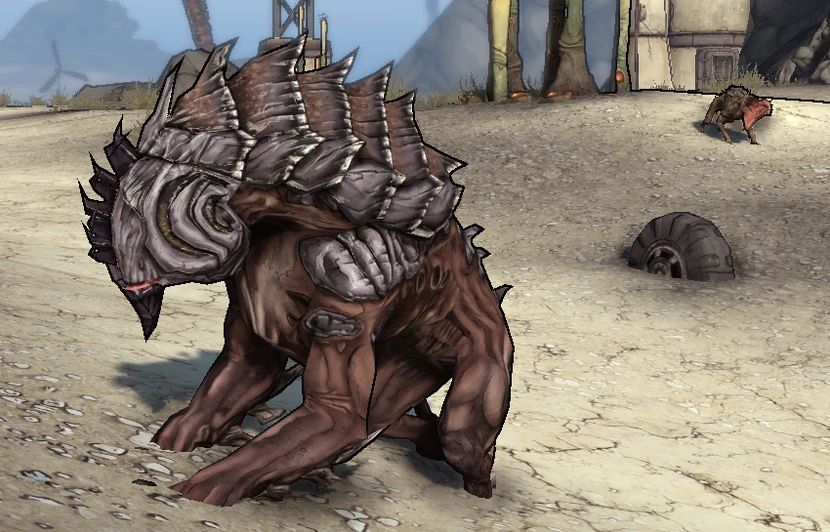 massive pig with extensive facial, head, chest, and shoulder bone armor hidden under flesh, fur, and fat