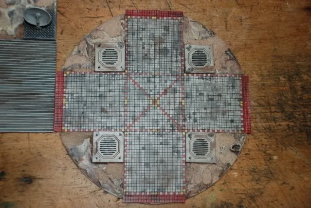I'm going to be trying to get rid of all the 40k bits, but the is covered in them! But this is the main landing pad in my 15mm star port. The smaller pads are coming from the hexagon kits, as used here -