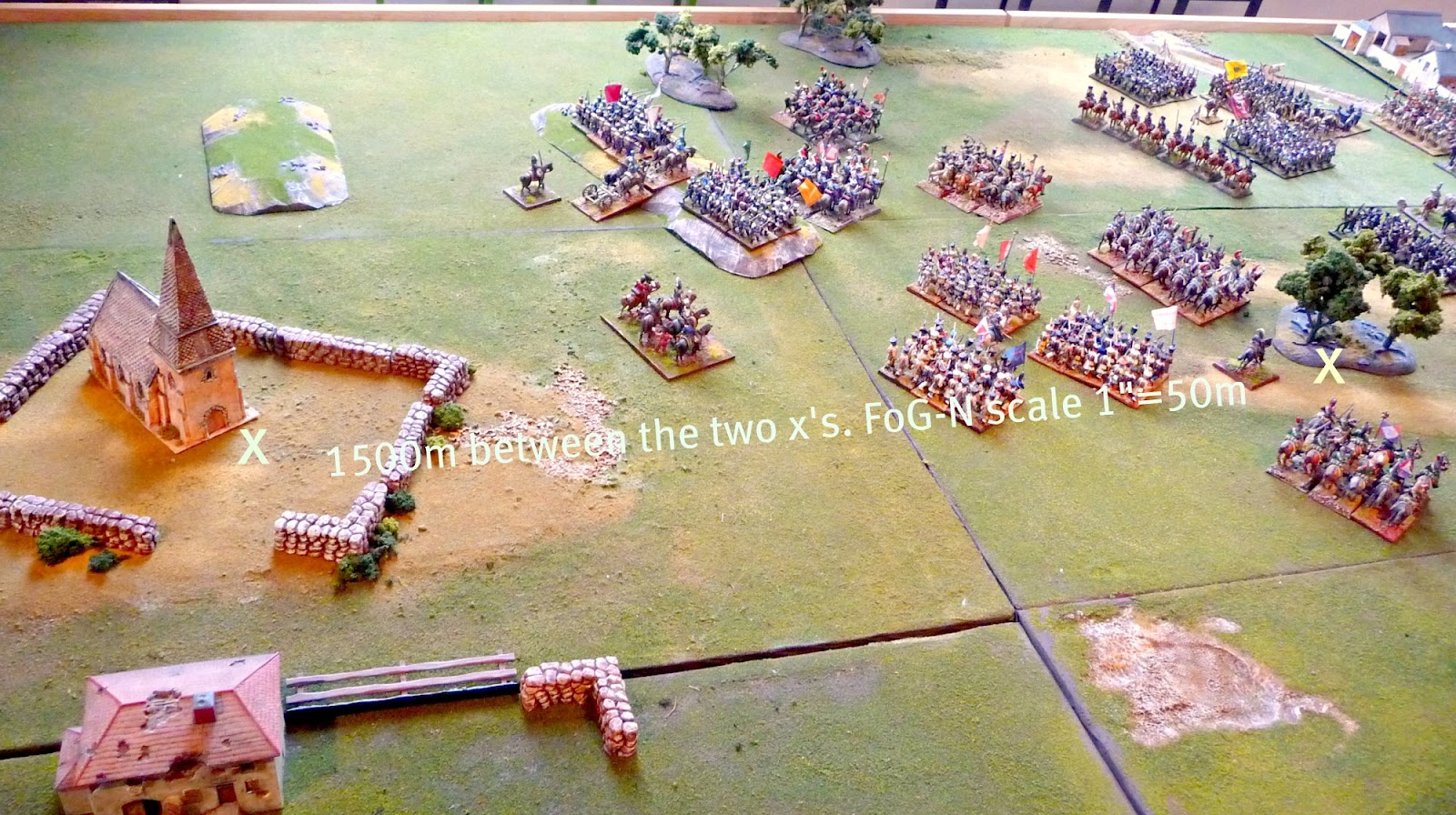 This is what I meant by figures looking right. This shows higher level formations that still look like their constituent parts. Possible in 6mm and under. Not a practical solution in larger scales. Most FOG-N battles will be fought in 15mm and 28mm scales with 'Regiments' that look like battalions formed in massive columns. Fair enough. But that also means that unless you're blessed with a huge playing space and thousands of figures, you won't be able to recreate an entire, or large part of a historical battle in larger scales since only a game where battalions are the basic unit will give the visual you want |