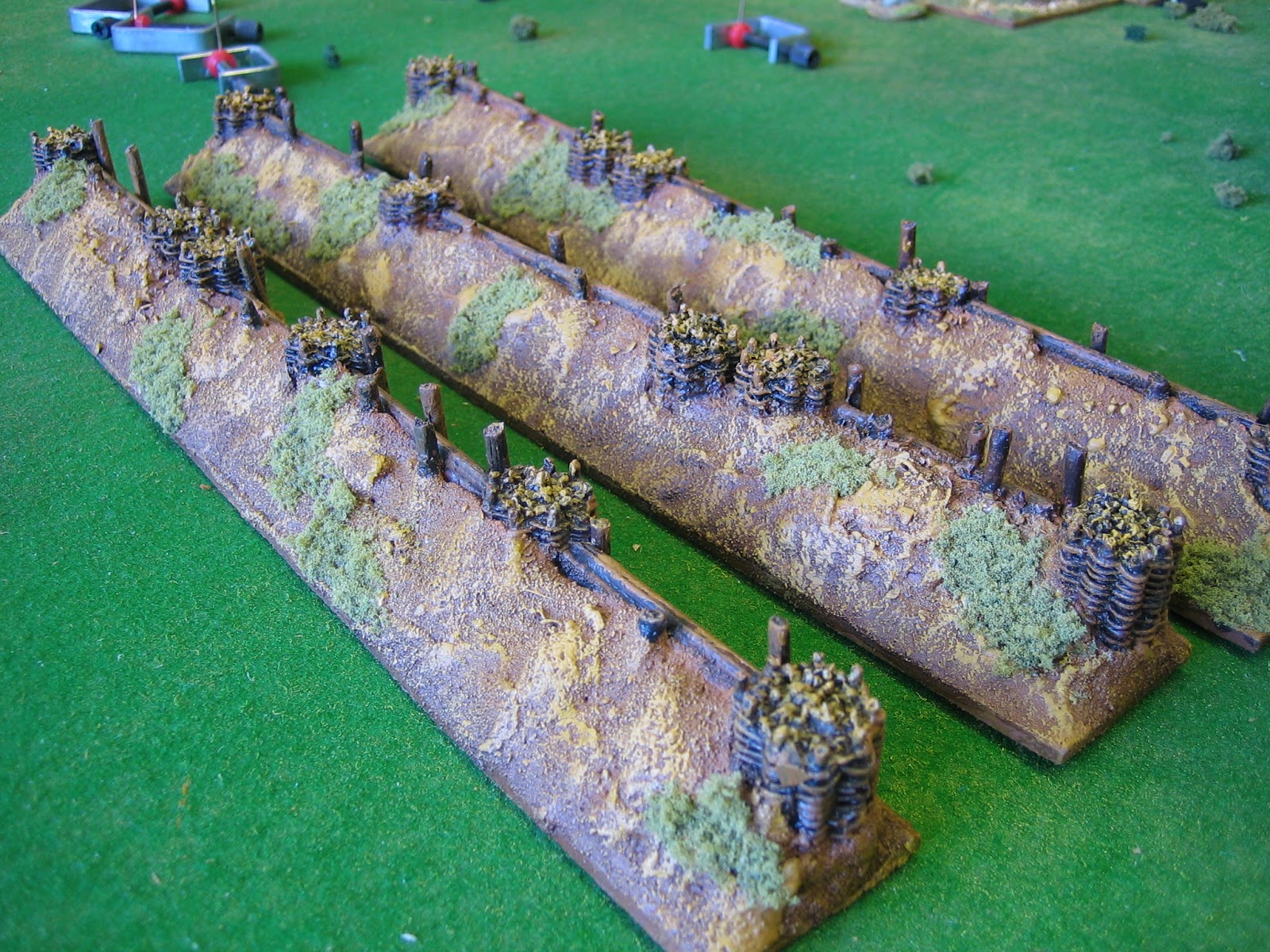 Thank you, Hans. Hi guys, This week, whilst whiling away my time in the TMP's cooler, in between throwing my rubber ball against the wall and plotting my next break for freedom, I made a few more feet of generic (16th to mid 19th Century) earthworks. They are easy peasy to make, relatively cheap, and they look very effective for the combination of time and money spent on them. Here's how: link And here's a front and back pic to show you what I'm talkin' about.