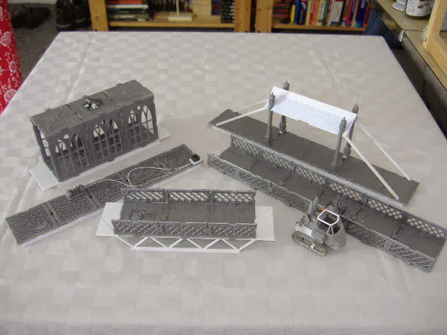 I agree: I like these a lot, and they're a refreshing change to the usual 'future gothic' stuff! Regarding the wire, which I think adds a lot to look of the terrain pieces, I found on a similar project that rounding the ends of the wire with a file made them safer to handle. YMMV, and all that. |