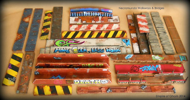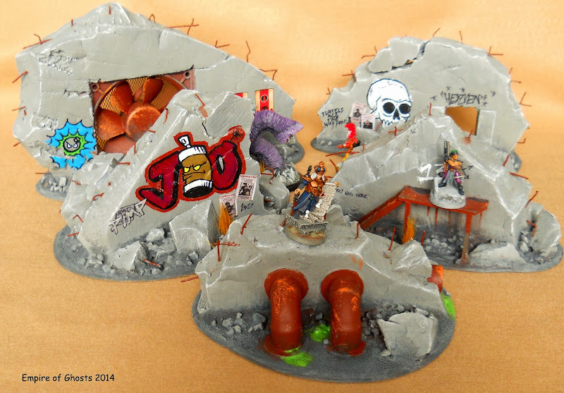 Over the past few years, it's become apparent that I need more terrain for the Adepticon Necromunda tournaments, so this year I decided to throw together some new terrain pieces from odds and ends I had left from prior projects. They all still need to be properly painted but I thought I'd share. More info below: link Collapsed Dome Walls