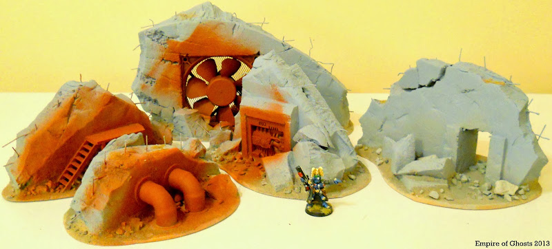 They're finished! I have to say I'm really proud of these collapsed dome walls considering their cheapness (basically free 2" foamboard, some bitz from the box, and 3mm MDF bases) and quick turn-around time (~6 weeks, alongside many other projects). More pics and info below: link
