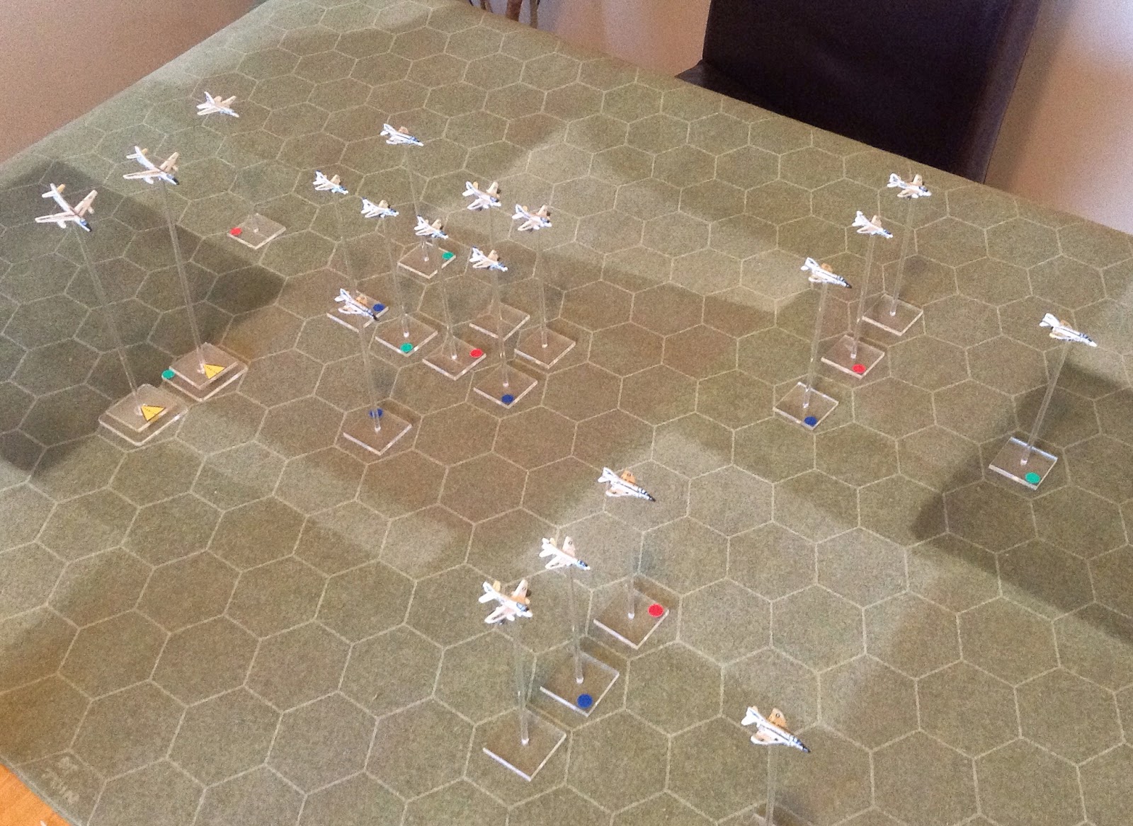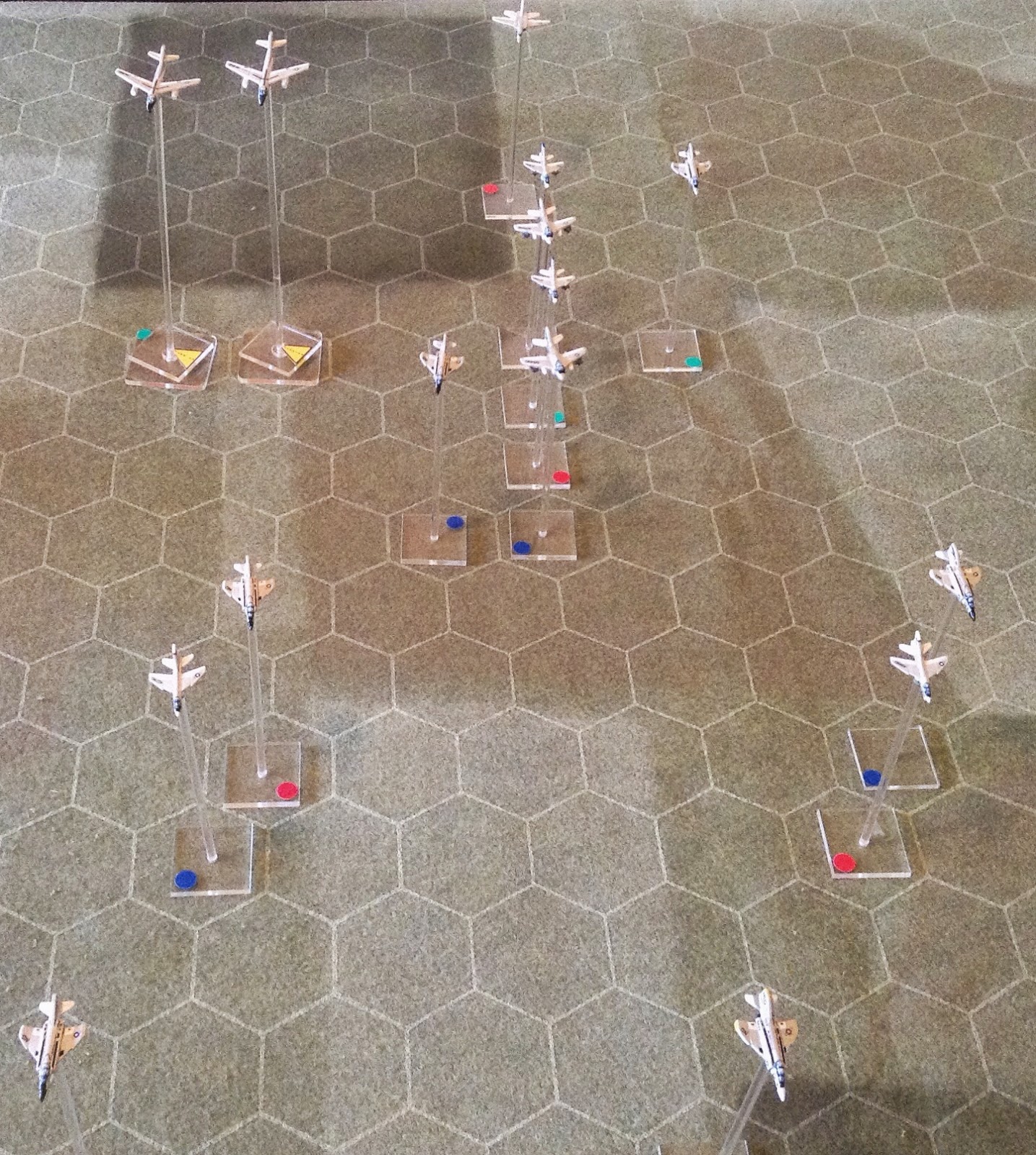 in 1/600th and have got this to the 90% stage. This is a representation of an Alpha Strike for use with the Downtown game where one model represents one flight. I have two more airwings to make up after this, one using F-8 Crusaders, Skyhawks and early EW aircraft such as the EA-1F, The other is F-4B Phantoms and Skyhawks.