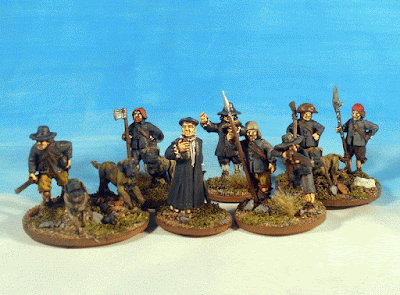 Thanks:) The priest, agitator and dogs are Wrlord, the remaining musket and hand weapoins are perry ECW, skirmishing muskets and some unarmoured pikemen. |