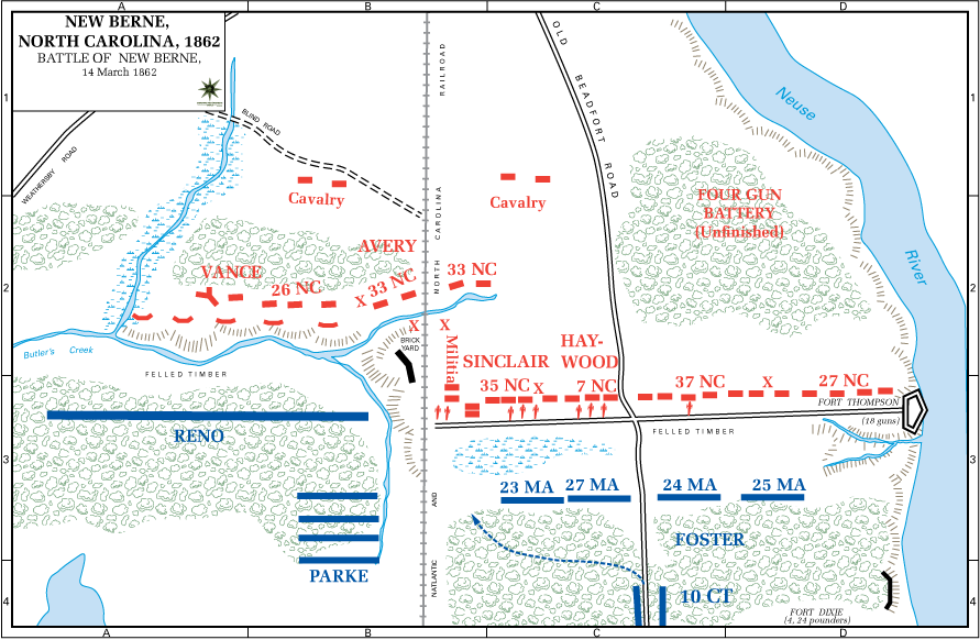 Burnside captured New Bern, cutting the coastal railway, and sealed off most of the eastern seaboard of NC by capturing a constellation of towns and islands around it (from Fort Macon to Roanoke Island), but at that point the campaign ended because he was recalled to help cover McClellan's retreat from VA. The original plan had been to continue the drive inland to Goldsboro (along the Neuse River) and cut the strategically critical North-South rail line to Richmond. Lee was reinforcing North Carolina to oppose this, so it could be a really fun "what if" campaign, with both sides operating on a shoestring.