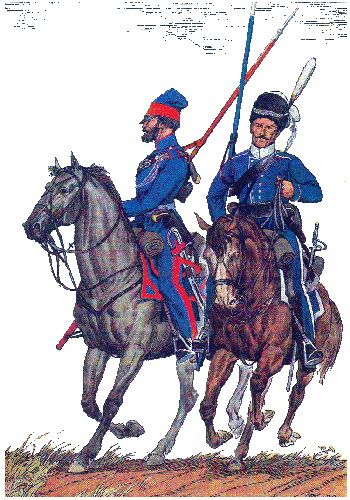 I think he may have seen a relic carried into exile, with the black aged into dark green and the gold lost from the cords. So I would go with the black and gold cords,but add the embroidery. Lance pennants, if carried (not usual for cossacks) would have been white and/or blue or made up to imitate, as a decption, any Polish or other uhlans known to be in the same area. Uniforms (notice the distinctive moustaches)