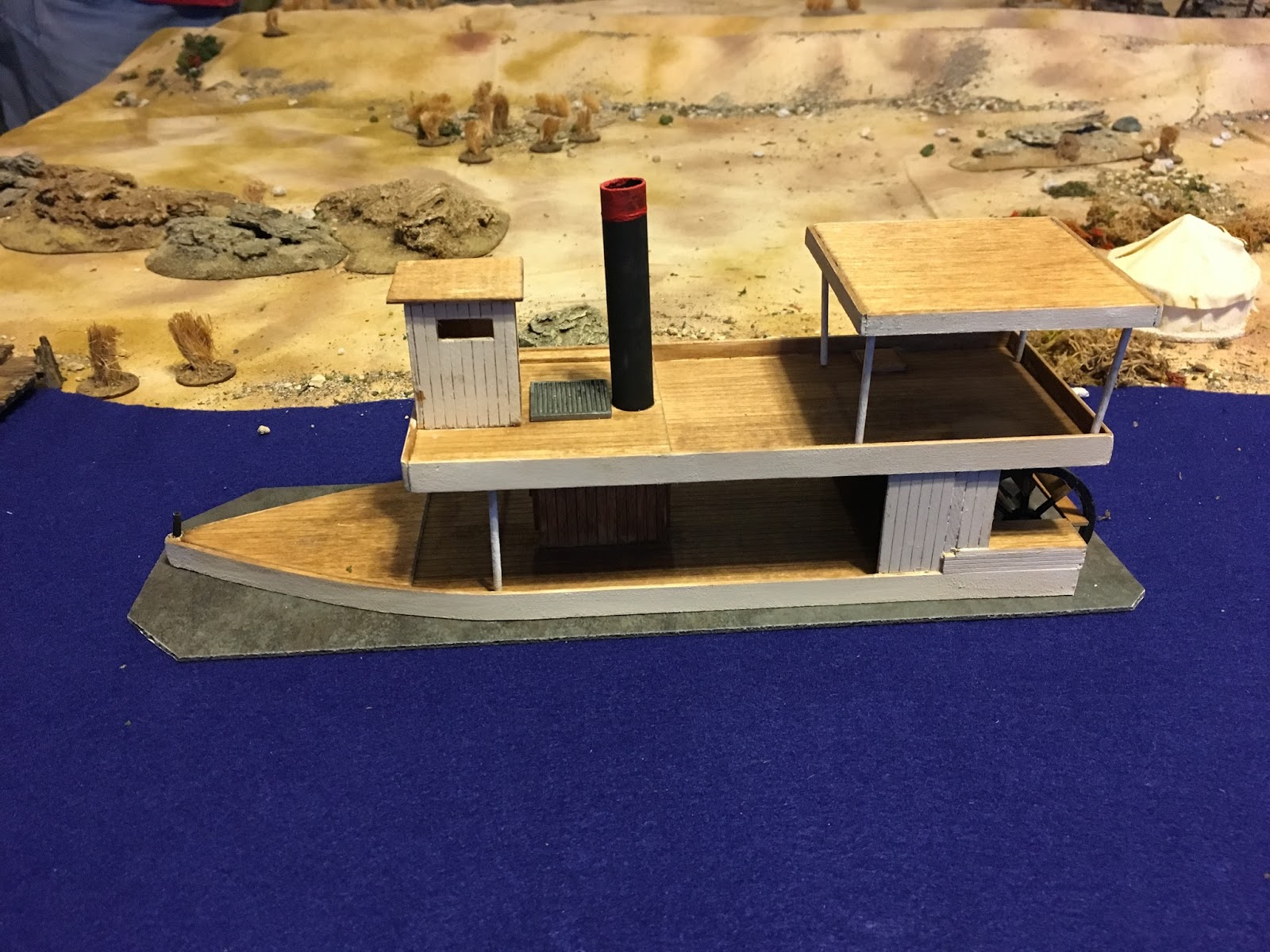 The Congo Boats have arrived!!! The Congo Boats have arrived!!! My new custom made Congo / Darkest Africa boats have arrived from the "Last Stand Dan's Boatyard". With all the hubbub about the new rules set "Congo" visions of river excursions, dense jungles, ancient ruins, angry natives, and evil slavers danced in my head fueling multiple scenarios. So I decided to ask my buddy Dan to make me some Congo style boats, and boy he didn't disappoint! He makes all sorts of colonial vessels, gunboats, stern wheel and side wheel steamers, dhows, junks, etc. Check out his blog for pics, WIP's, details, and prices (which are VERY reasonable by the way!). laststanddan.blogspot.com Here is his prototype "Congo" steamer. Simple, effective, designed for gaming, sleek, and elegant! I especially like the paddle wheel assembly and the decks. One look at this boat and I immediately envision it steaming down the Congo delivering trade goods, transporting adventurers, packed with archeologists, or troops and supplies to assist a beleaguered mosquito infested garrison.