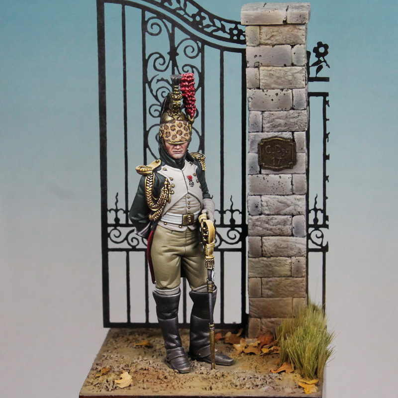 question : the miniature shows parade dress, the helmet should be highly polished, you chose however quite a battered look – which I would like for campaign wear and tear, but for a parade – the servant of the officer would have polised it without problems to a fine sheen. |
