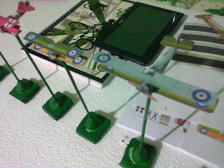 i have a while playing with an excelent set of rules called dogfight! by ostfront games the maker of the ruleset was kind enough to give me a free set and in return i pimped up his files making the artwork and adding a campaign companion to the rules, i really like the wings of war planes not so much the game but its like nah for me i can do my own minis so here they are this is the new group of planes i made i have a lot more still waiting to be based.
