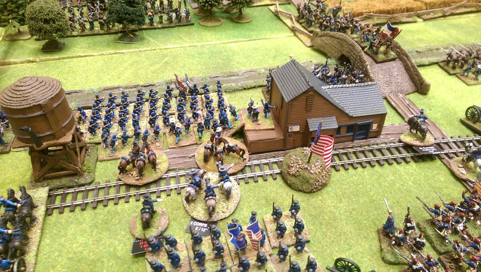 Last Friday night at New Buckenham four of us sat down for a game of Brigade Fire & Fury. This was the first time we had played the updated version so the idea was to see what had changed and get to grips with the update before introducing them into general club use. I rolled up a two vs two game using the Pick up Game section in the back of the rule book for a mid war eastern theatre encounter. The union were allocated a cavalry division to act as forward pickets and to see how they were effected, if at all, by the update. A 3 x 4 foot table was selected to try and get the forces engaged quickly for rules evaluation.