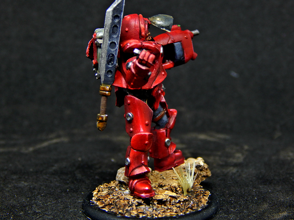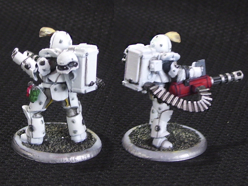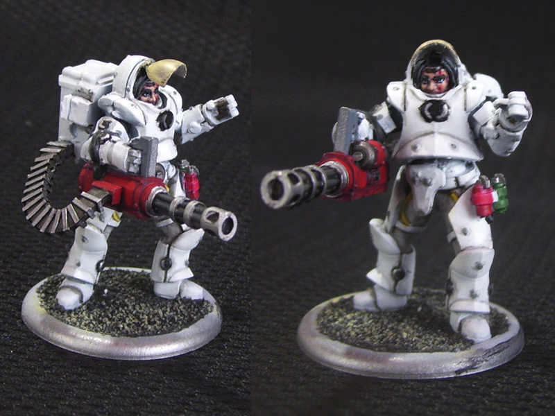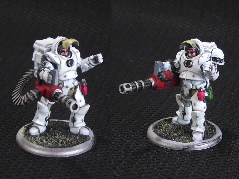 The Sargeant Assistant with Gatling is here! (base not finished). Pictures are a bit blurry because they were made quite fast, with an improvised booth, more serious pictures will be made when squad is complete.