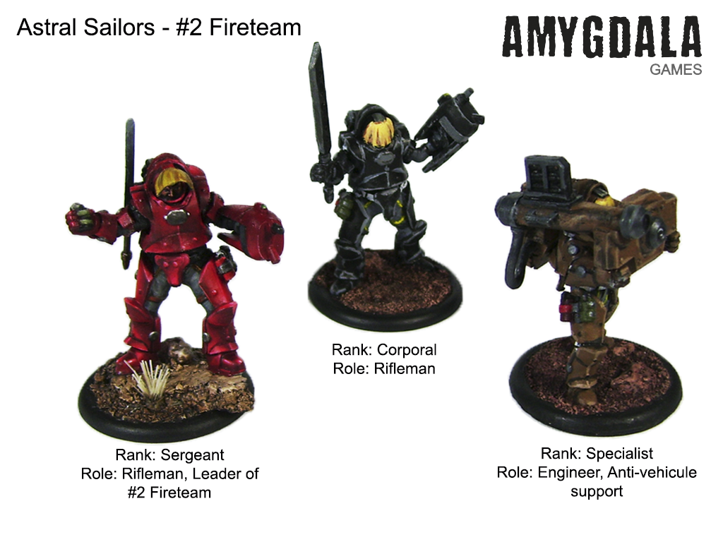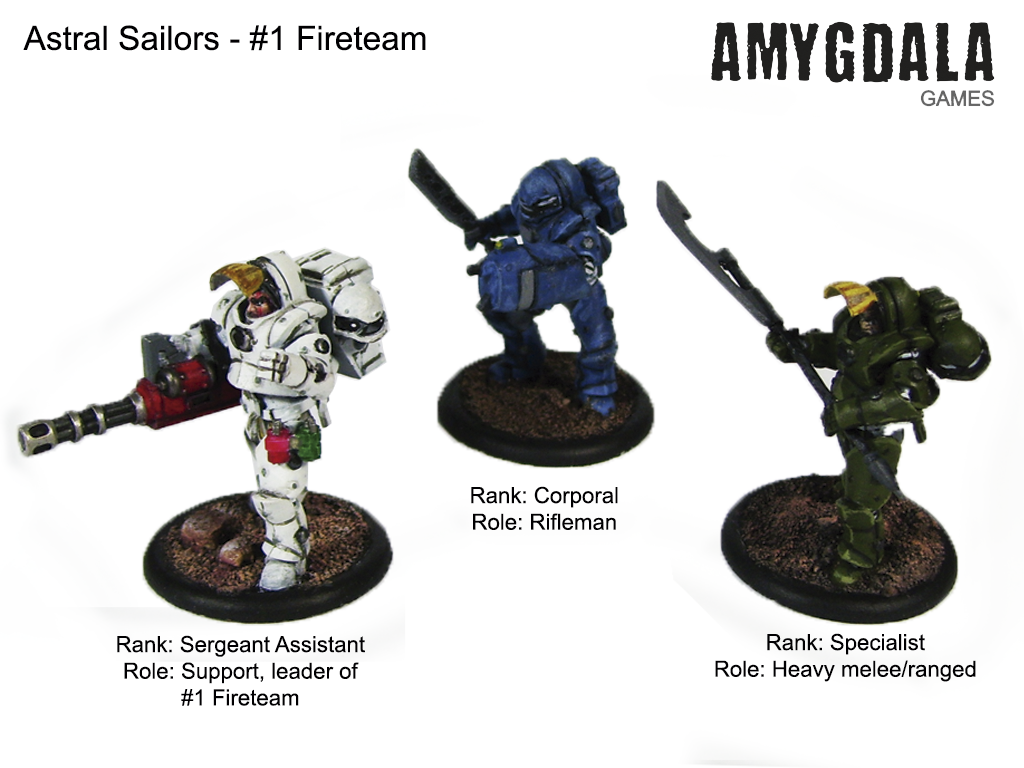 Painted squad with multiple color schemes to help imagine the Astral Sailors in different enviroments.