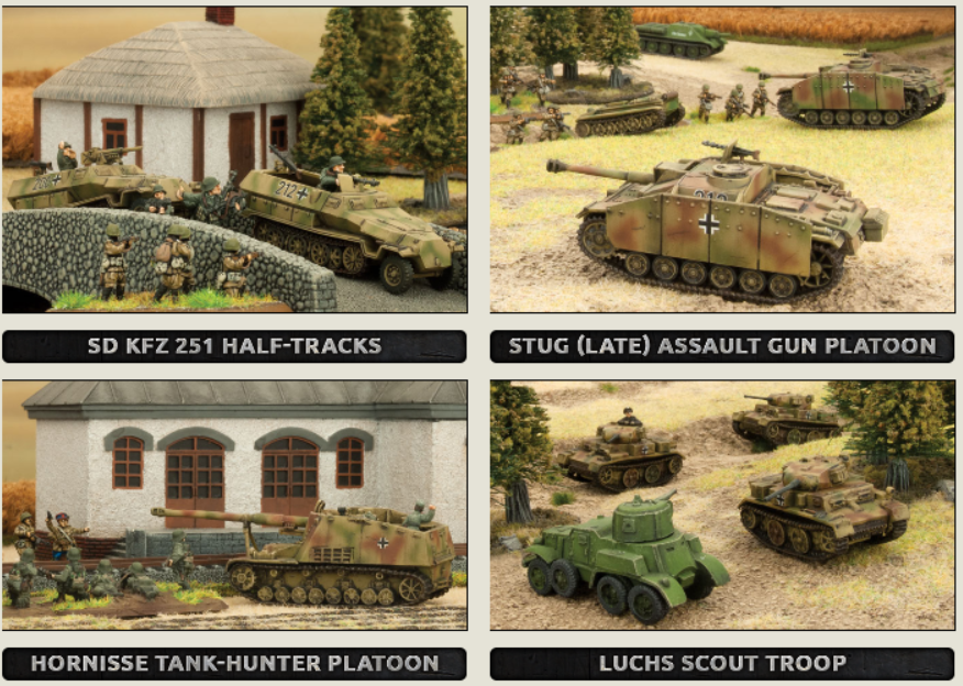 Sd Kfz 251 Half-Tracks (Plastic) (GBX124) link Hornisse Tank-hunter Platoon (GBX130) link Luchs Scout Troop (GBX131) link Wespe Artillery Battery (GBX132) link Amicalement Armand