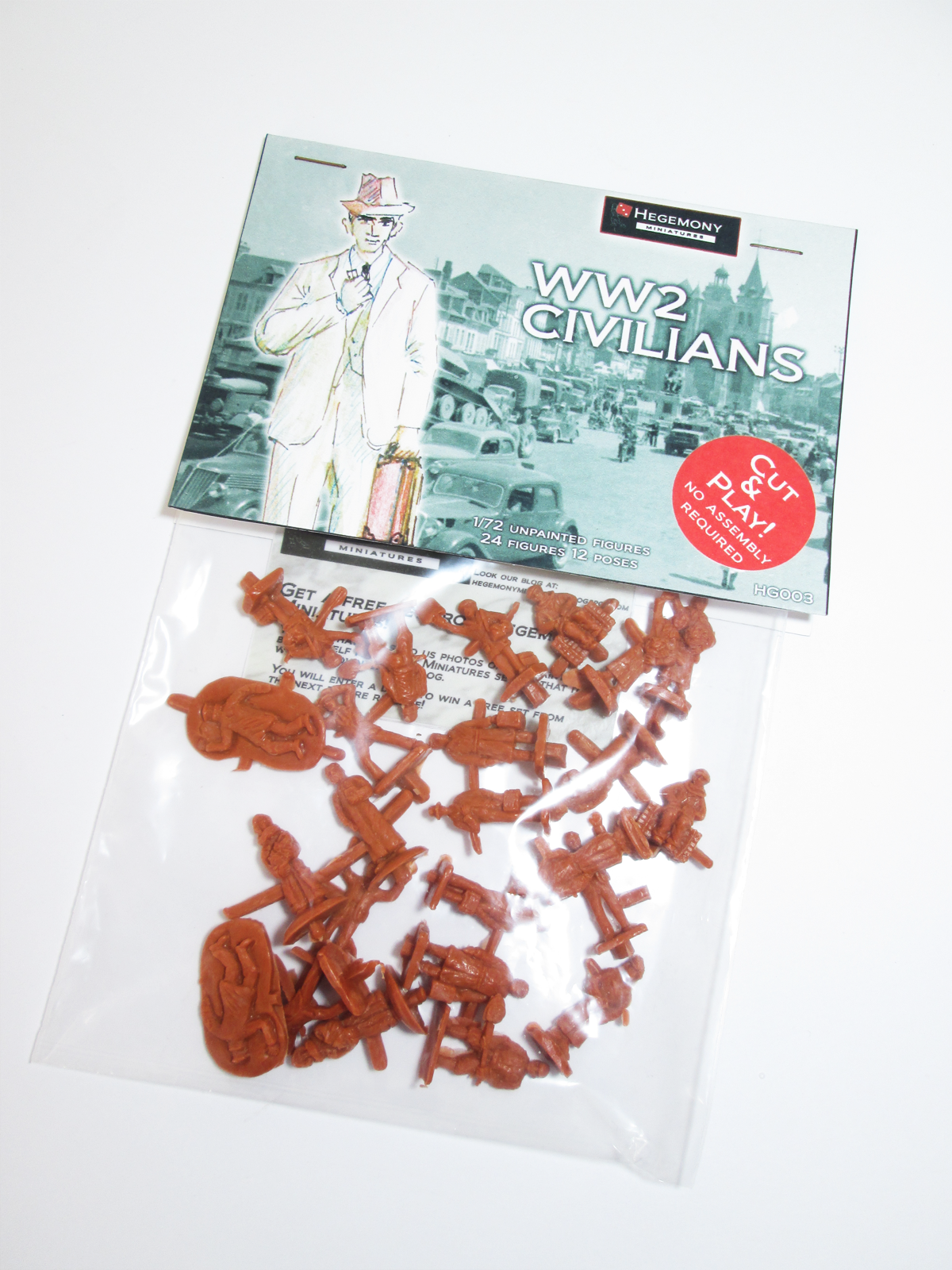 "suspicious man surrendering" :-) "A 100 % ecological product, in a non-industrial method of production and made with bio-degradable plastic" I wonder what that is ? Hopefully it won´t end up suffering the Problem of "plastic rot" that older plastic sets (Airfix etc) suffer from |
