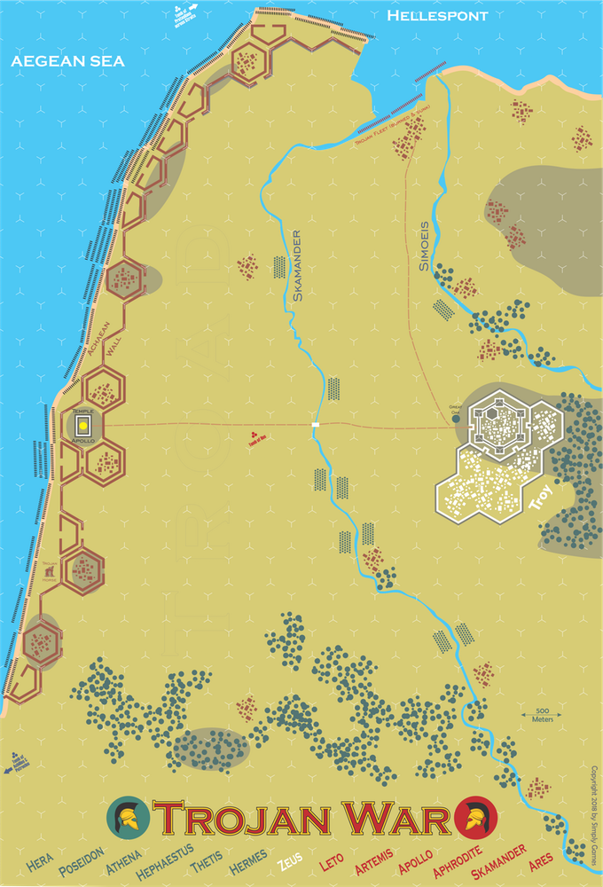 I would expect a game about the Trojan war to go like this: Turns 1 – 19: Greeks gather forces. Greeks decide if they have enough to attack. If not, +1 to Greek food supply. If so, cross the Aegean Sea; roll percentile dice to determine losses to storms, bad navigation, and desertion. Remaining forces besiege Troy. Resolve battles. Surviving Greeks return to Greece; roll percentile dice to determine losses to storms, lotus-eaters, and sea monsters. Turn 20: Greeks give up, leave gift for Trojans, and depart by sea. Trojans decide whether to burn gift in situ or move it inside city walls. If brought inside resolve battle and determine winner. Did I miss anything? Oh, right, every cattle sacrifice before crossing the Aegean is -1d10 to the percentile roll for losses at sea. Every cattle sacrifice before battle is a positive modifier to attack, defense, and morale rolls. Special sacrifices like daughters or mothers are 5x the modifier, but can be positive or negative. |