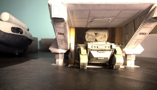 I didn't really do anything special at first. I printed most of it on slightly heavier paper than your standard copy paper, but that's all. And it's sturdy enough I'm not even sure it was necessary. Later on I added a bit of cardstock to the back of the chin where it tucks up to give access to the bay. That one spot seems a little weak, as it provides support for the pedestrian ramp in its down position. But that's the only real flaw I've found so far. There is, naturally, more on the blog, but I'm happy to answer questions here. |