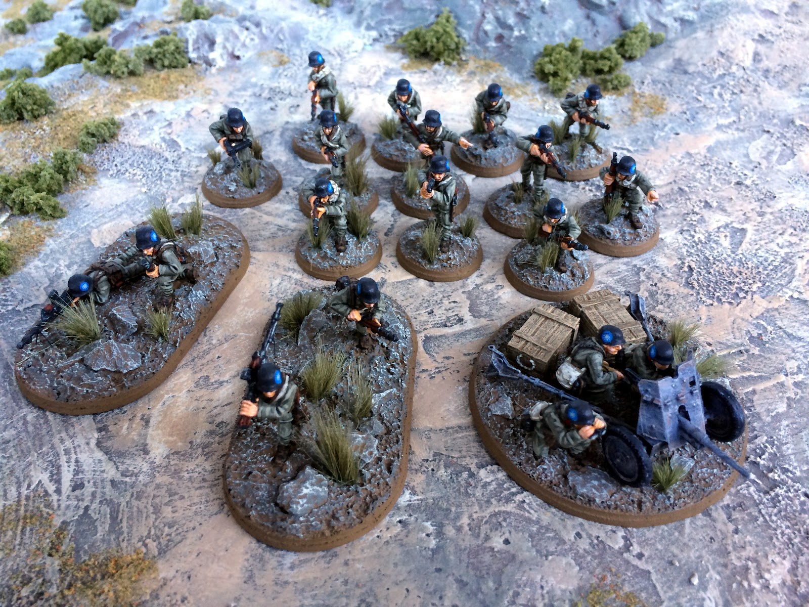 I originally created and based these for Crossfire but I am about to embark on a re-basing project to get these onto individual bases for playing Chain of Command. These are all 1/72 (20mm or even 1/76) plastic figures, mainly Caesar and conversions using Airfix German heads.