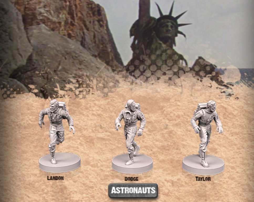 WYSIWY launched a campaign to fund a board game on the Planet of the Apes saga. You will find miniatures to paint as well as elements of scenery like the famous statue of Liberty half buried. link