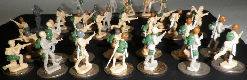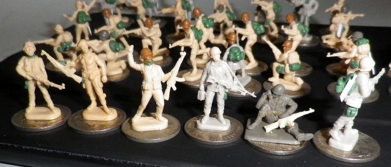 Hi guys My first modern platoon sized skirmish project (might use modern chain of command), an Infantry platoon for my central African imagi-nation, The democratic republic of Botswalia, figures were converted from Italeri's 1/72 plastic Vietcong, Warsaw pact, and US special forces bodies with various US M1 helmet heads, added cargo pockets on their pants, various packs/pouches, scratch built some machetes, I have given all the leaders beret heads, which I will paint either red or green. Not sure what camo I will use, thinking of using several cammos, maybe 70% Rhodesian or British denison smock, and 30% another 2 different camos, any suggestions? maybe US woodland and soviet sun bunnies? maybe a tigers stripe pattern? i'de like something with a majority bright green, I want them to look a little irregular but professional. Thinking I will be able to use them in scenarios from the 70s to today, vehicles will be a mix of British (former British colony, Britain continued to supply) and soviet (captured from wars with neighbours) I"m also making a ultra modern US and Russian forces and a local communist style guerrilla enemy. More pics here gunnerswargamming.blogspot.com/2019/06/1st-modern-african-imagi-nation-project.html