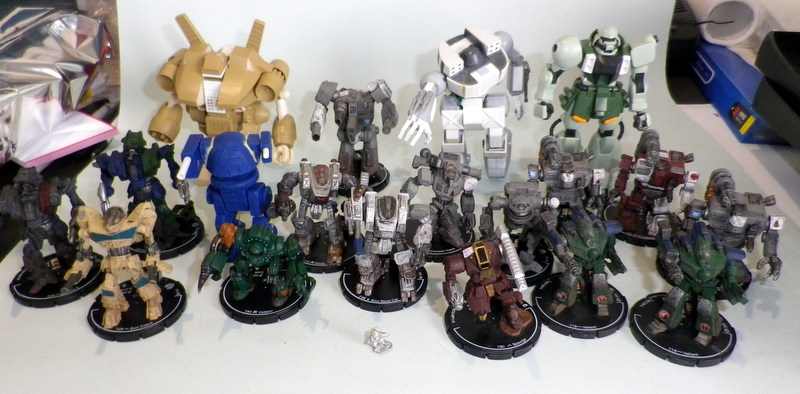 Hi guys Lonely little 15mm infantry figure out front for scale. So my Mechwarrior clix have arrived, here is a group shot with some of the other Mech I have built so far, so here is the problem, I think they are all (the clix) about 30% to small, my 2 largest mechs I'm classing as 100 tonne assaulty mechs, the mech sitting between them is a clixs 100 tonne assault mech, I won't be able to get it to the same size, but I might be able to get another 30mm height and some more bulk out of it, and the same with the others, I will make some strategic cuts around ankles, knees and waist and place some spacers in, then bulk them out with extra armour. I should have about 48 mechs with these and my un built mechs in the collection now, so will build 4 factions with 12 mech and 15mm supporting infantry and vehicles, I will do a Davion, Jade falcon, Mercs, and a 4th undecided faction. gunnerswargamming.blogspot.com/2019/09/mech-force-so-far.html