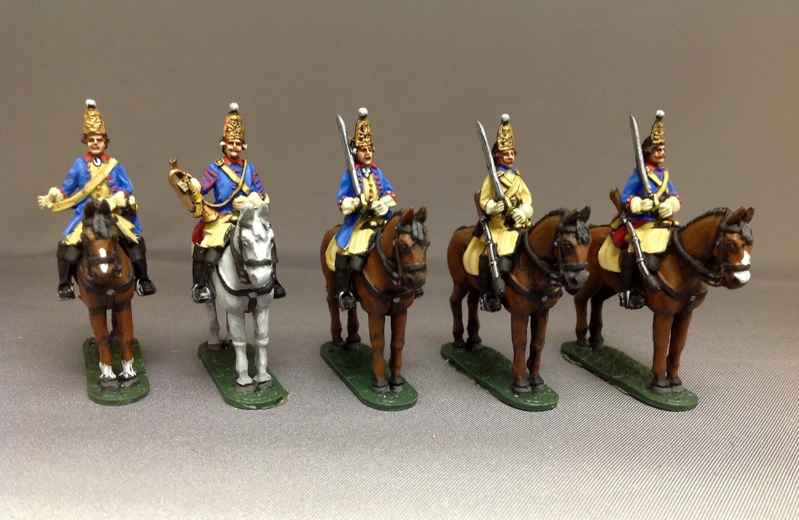Very nice! I find the Horse Grenadiers are under-modeled, as the Russians made much use of them in the SYW (in contrast to the dragoons, of which exactly 3 regiments saw any action) Love the look and especially the buff coloured waistcoats – also love the Minden Miniatures lean and mean minis |