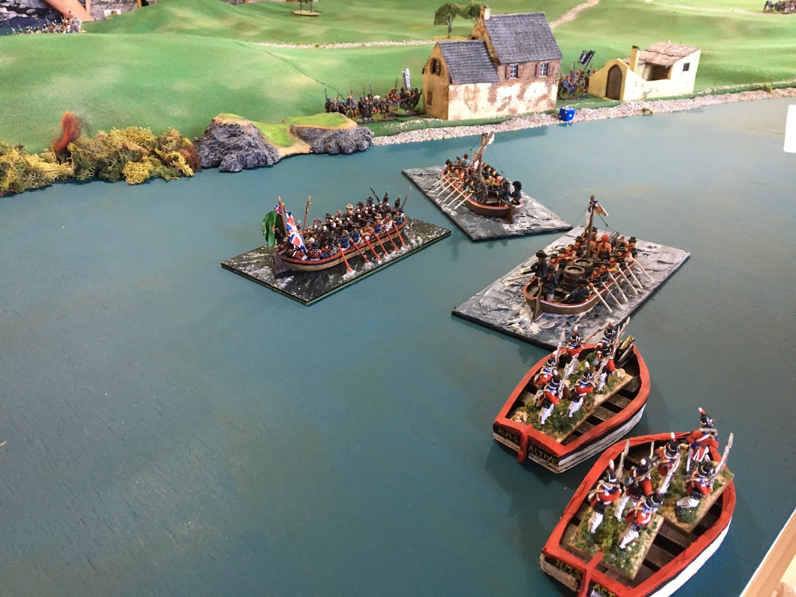 "Today we played a game to make use of my recently completed flatboats (joined by a couple of boats from another player)…an idea I have had for quite a while. The game was played with five British commanders playing against the Spanish controlled by me and one other player. All the Spanish responses were programmed. Here are the details of the game…." link link link link Main page link