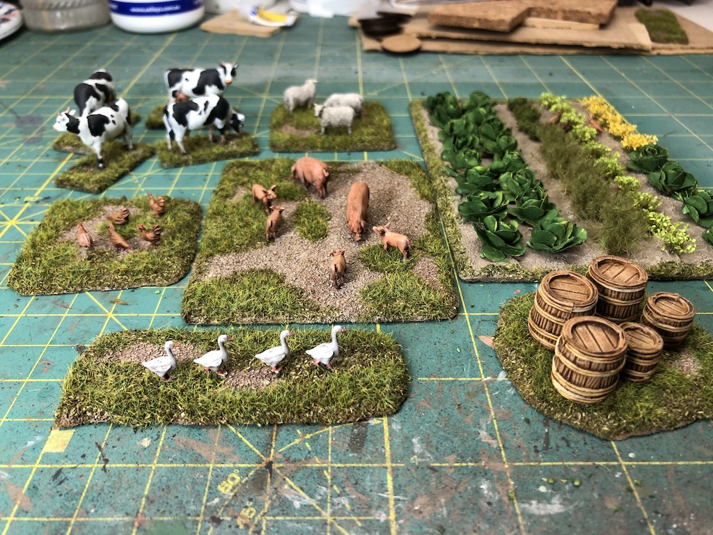 "Not that I need reasons but there are several why animals, stores and crops would be useful additions to my collection. Apart from making for attractive scatter terrain, skirmish rules like Sharp Practice and Lion Rampant feature scenarios that involve raiding, pillaging or foraging and for that I need something for my armies to steal…" link link Main page