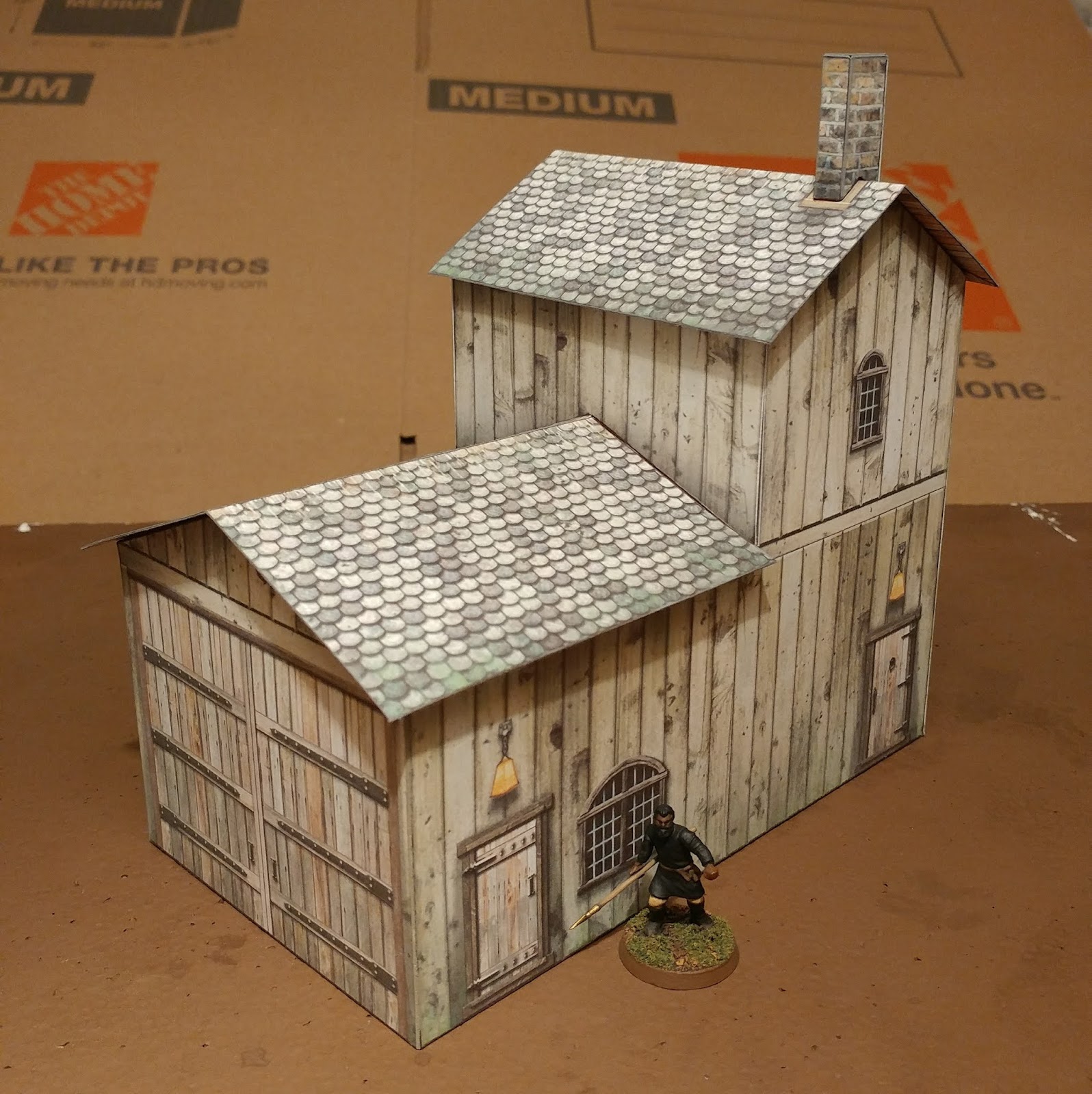 My friend wanted some buildings for his Walking Dead game, here is a simple paper farm house I made: