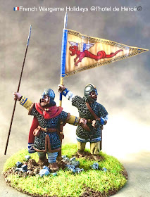 Some more additions to my dark age collection. Saxons in the Loire, I plan to do 6 bases of infantry figures and a few bases of lights and archers and perhaps some skirmish figures based for Saga. I will be using a mix of footsore and crusader. First up is my warlord Eadwacer, who raided up the Loire in the 5th century. The Saxon pirates raided the south and west coast of modern Brittany and Pays de Loire,and Normandy, settling around Bayeux and on the Belle-Īle in the mouth of the Loire. They were particularly active the 5th century raiding Angers and Nantes. A Roman allied contingent from Normandy also taking part in the Roman defeat of Attila the Hun at Chalons in 451AD. These figures are 28mm from the Footsore miniatures