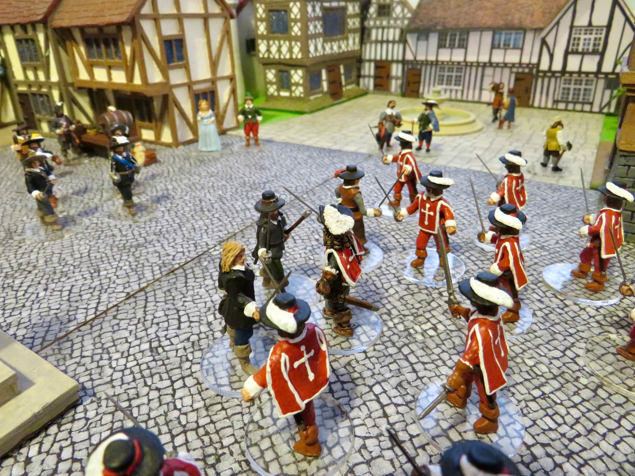 Not quite a battle, but multiple combat A musketeers style scenario played using figures from my 40mm collection. VIP and escort V cardinals guard. Links to relevant blog posts below scenario context: link