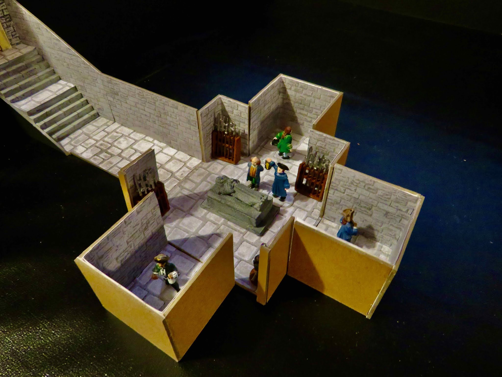 Below ground was on the right hand side, with a black game mat and black back scenes on which were placed the passageways and chambers