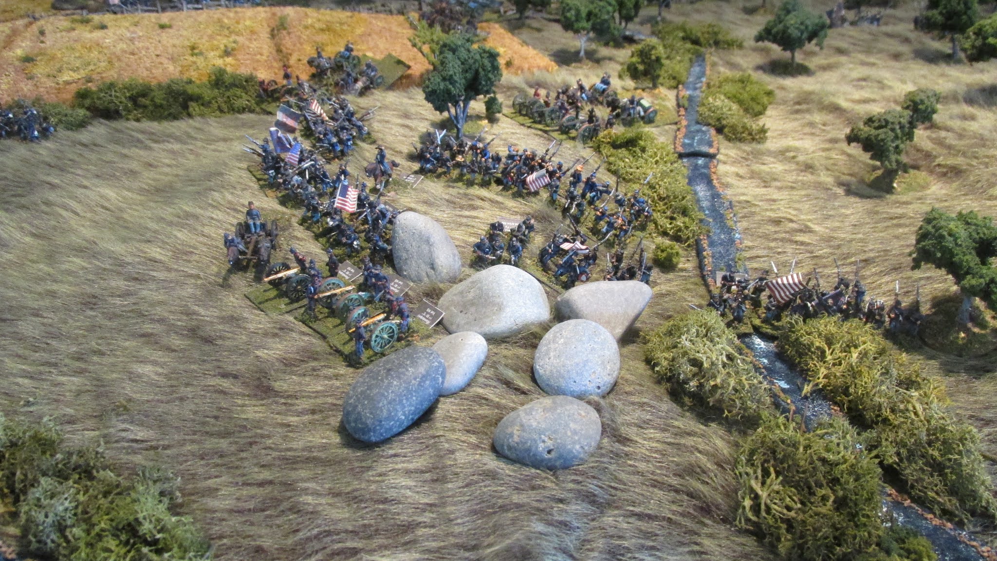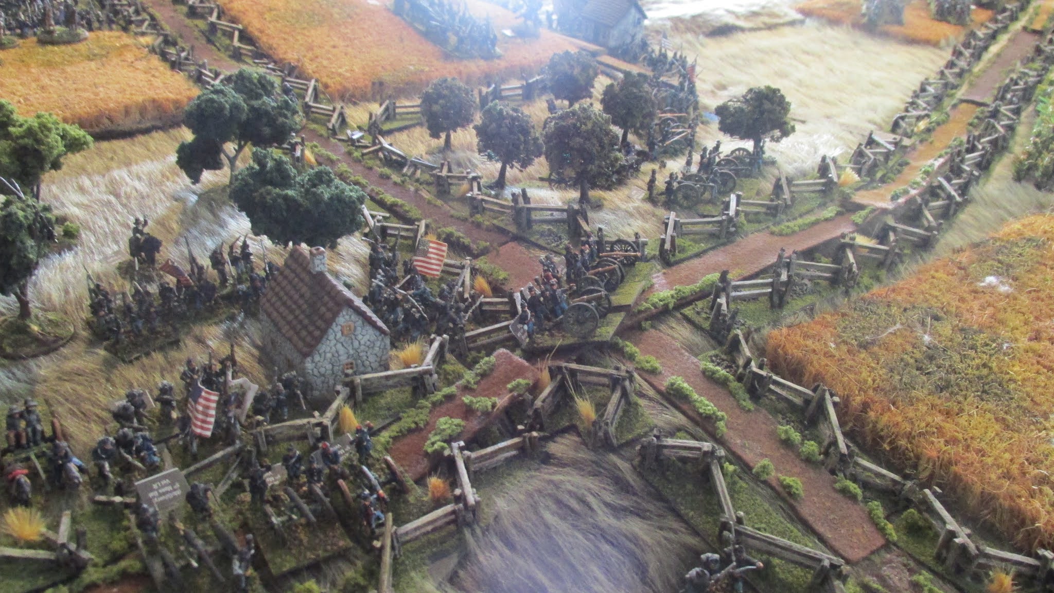 I have those very same scenario books and use them often. Everything looks great but I am not a fan of bear fur. Looks too much like shag carpet. Maybe because I grew during the 70s. Most people like the bear fur. I am the odd one out. This my Antietam game in regimental scale. link |