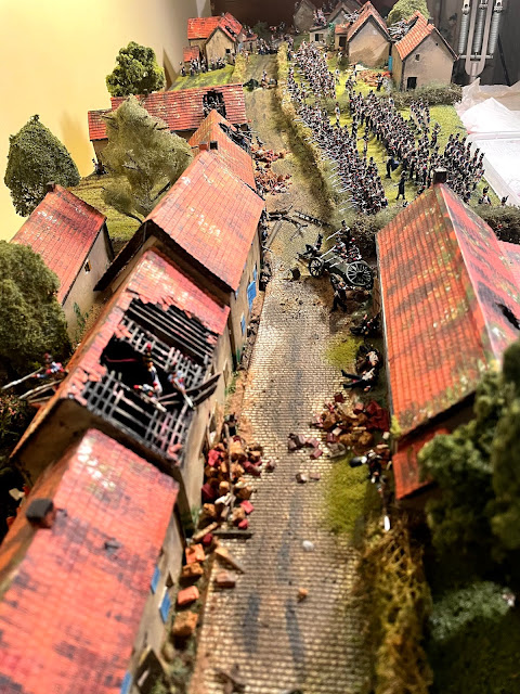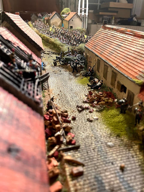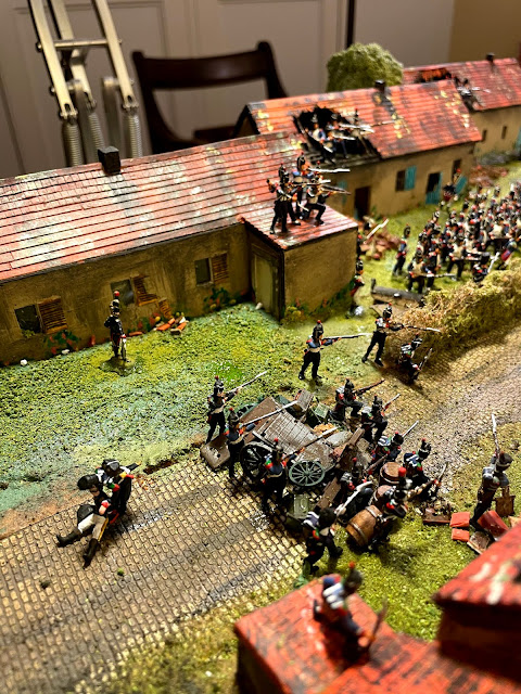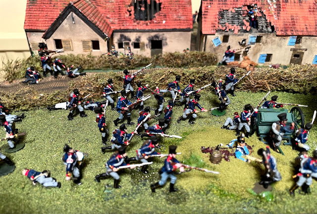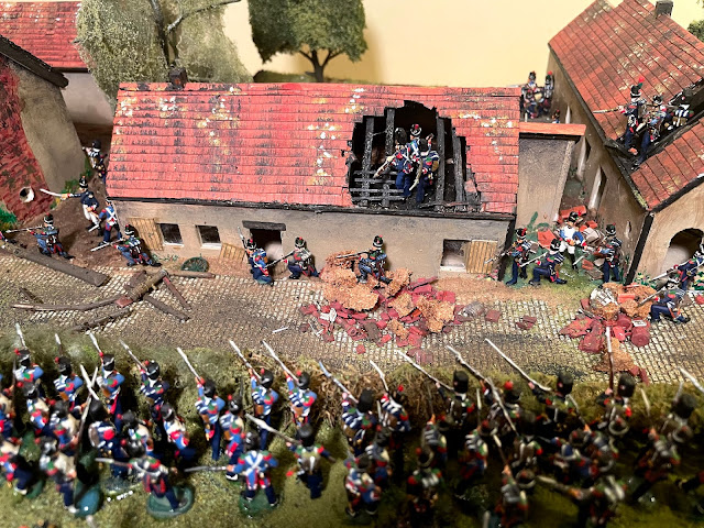 I have a bunch of Prussian Hussars sitting here, next to my PC, just itching to get into your Battalion of Old Guard. It must be seriously murder to pack the numbers required into such a confined space. FIBU Area did then involve wave after wave of assailants, leaving their dead as obstacles to the next assault. Add to that your burning buildings special effects, it sounds as though Plancenoit will be quite an unpleasant spot to meet one's maker. But brilliantly modelled. |