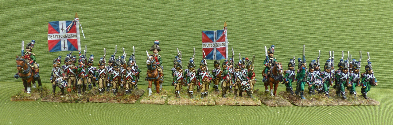 and the whole infantry of the German legion – I did not give my arquebusiers a colour, the colours are paint converted ancien regime colonel's white ones and pure fantasy there nobody knows how they looked like so I invented a pattern. url=https://postimg.cc/cKGchqSn]