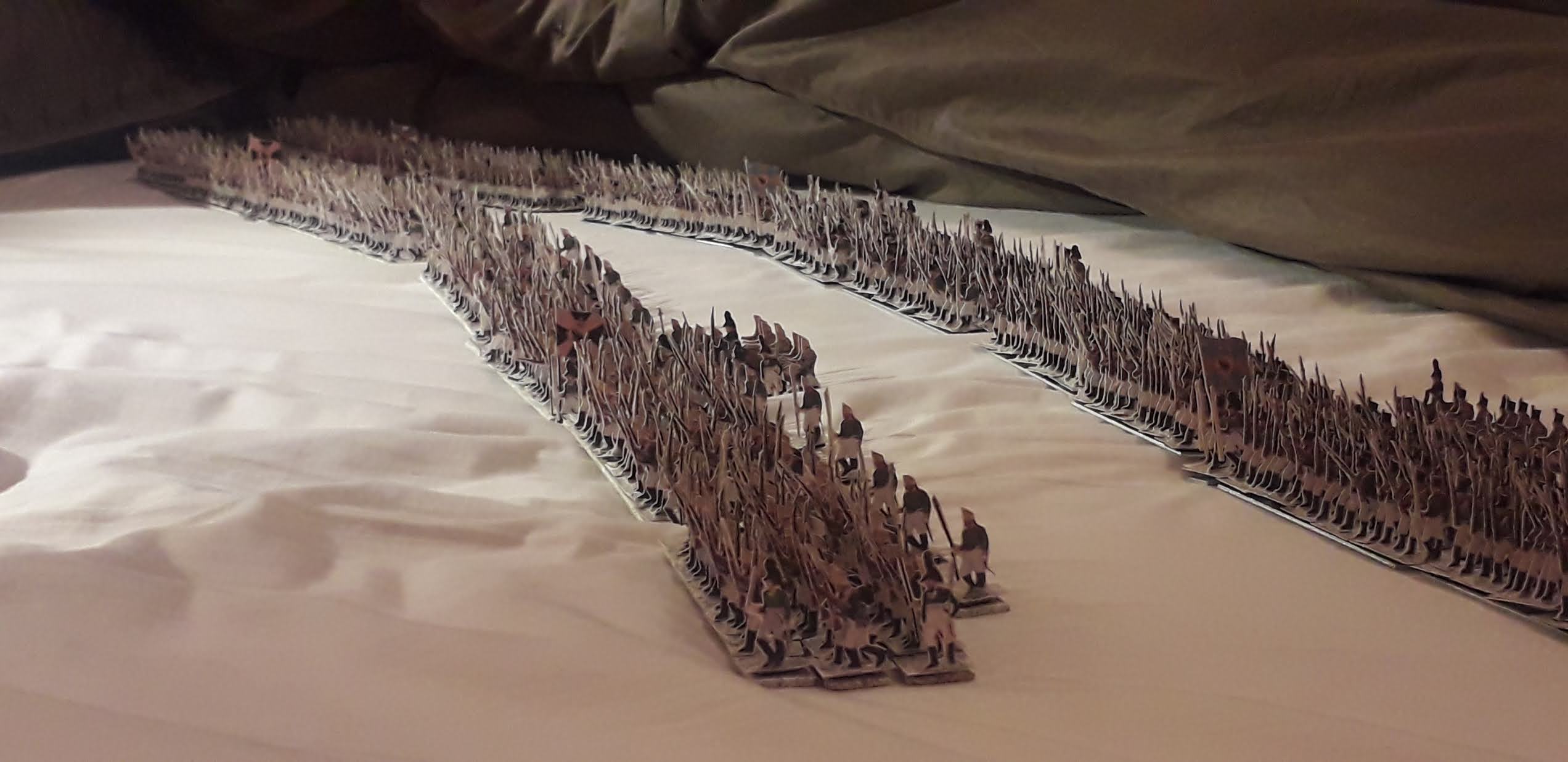 I hope my post will help somehow. I agree with the fact that the wargames do not represent the real size of a unit. This comes out quite clearly from my experience on the field with my attempts of wargaming at 1:1 ratio. I post some picture to explain better: picture1: a huge Bavarian Regiment on 3 battalions on 4 ranks 2.100 papersoldiers.