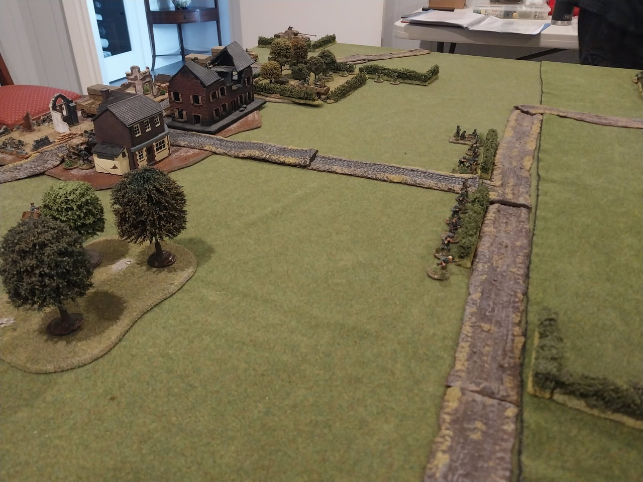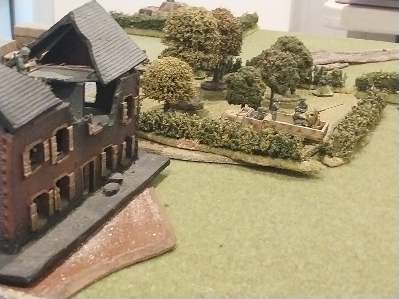 We played a 4-player Normandy game of "Rapid Fire Reloaded" today. (Mouen scenario) – using British Airborne for the Allied side: