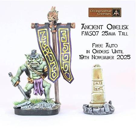 Until 19th November (during our Winter Mega Event), the new FMS07 Ancient Obelisk is included for free in every package sent out. Ideal for use in your Erin collection, it is 25mm tall and fits right in.